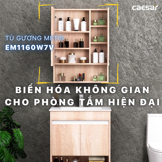 - Tủ gương phòng tắm Caesar Metis EM1160W7V