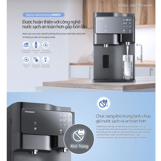 - Máy lọc nước Chungho Sanita GWP-60C9560M nóng lạnh