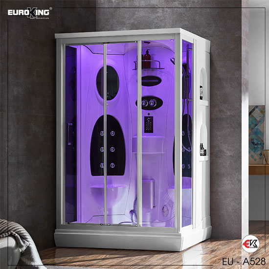 Phòng xông hơi ướt EuroKing EU-A528 đa năng, nơi bạn được vừa xông hơi, tắm rửa và massage thư giãn. Thiết kế phòng xông hơi dạng góc tận dụng tối đa không gian. Sản phẩm giá tốt, bển bỉ với thời gian.