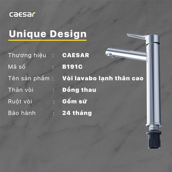 Vòi rửa lavabo Caesar B191C lạnh là sản phẩm liên doanh giữa Đài Loan và Việt Nam. Chất lượng tốt giá siêu rẻ phù hợp với công trình lớn, đa dạng kiểu dáng mẫu mã thiết kế đẹp phù hợp đại đa số người tiêu dùng, lớp mạ trắng sáng bền, bảo hành toàn quốc chính hãng.
