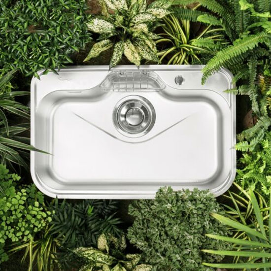 - Tích hợp phụ kiện thông minh: Thớt nhựa, rổ phụ, siphon.