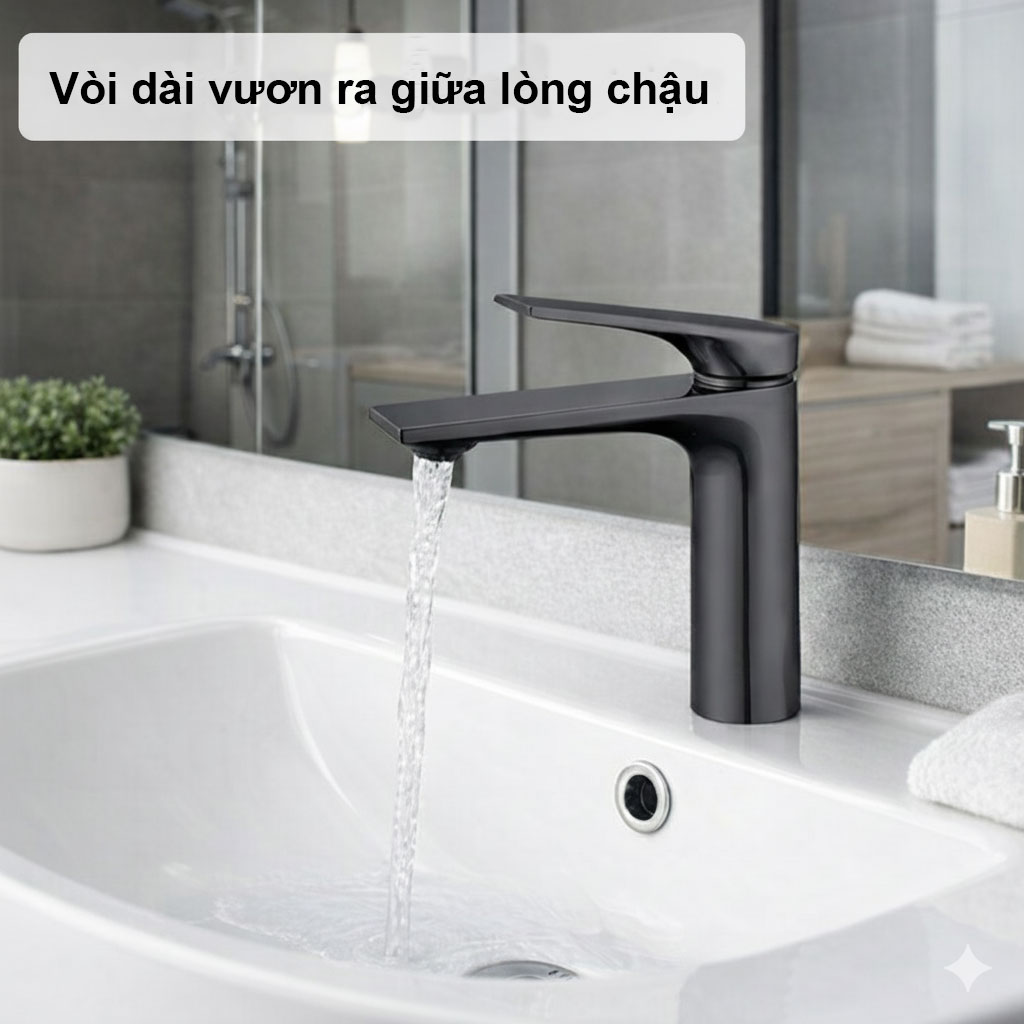 - Kiểu dáng vòi phù hợp lắp cho chậu đặt dương vành hoặc chậu âm bàn.
