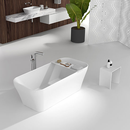 - Bồn tắm được làm hoàn toàn từ đá nhân tạo cao cấp. Khả năng kháng va đập cao, chắc chắn, bền màu và chống ố bẩn.