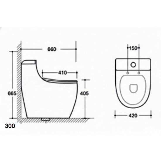 - Khoảng các từ tường tới tâm lỗ xả: 305mm