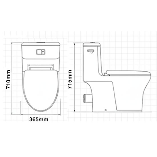 • Kiểu dáng: Bồn cầu 1 khối xả, két liền