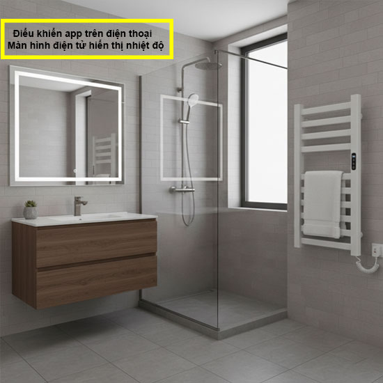 - Làm khô khăn tắm, khăn mặt và các sản phẩm được làm bằng vải, đồng thời hỗ trợ làm khô thoáng không gian phòng tắm. Thay thế cho các thanh vắt khăn hiện có, làm khô khăn nhanh chóng, loại bỏ mùi hôi, vi khuẩn và nấm mốc.