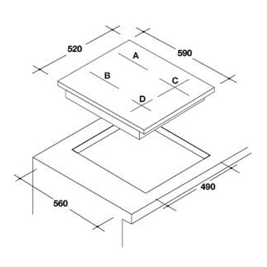- Kích thước cắt đá (DxR): 560 x 490 mm