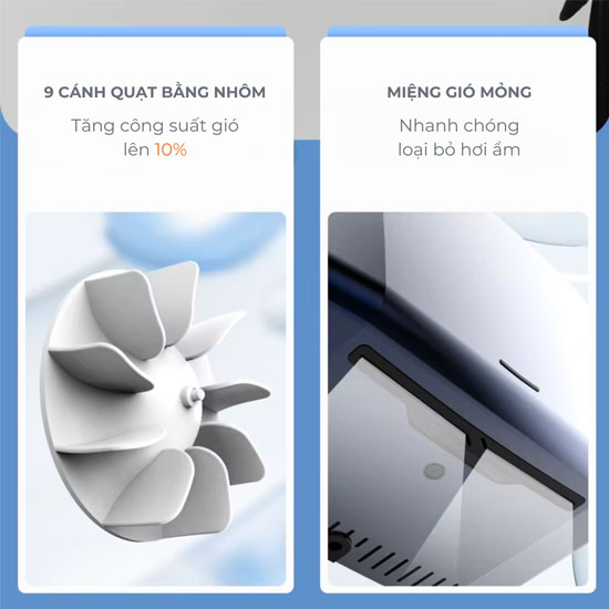 - Nhiệt độ gió: 65 ± 15°C