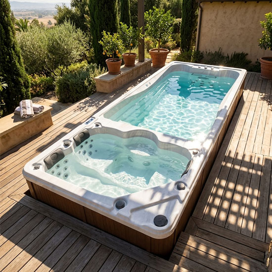 Bồn tắm Sục thủy lực, Sục khí, Khử khuẩn, Máy gia nhiệt kết hợp với bể bơi.