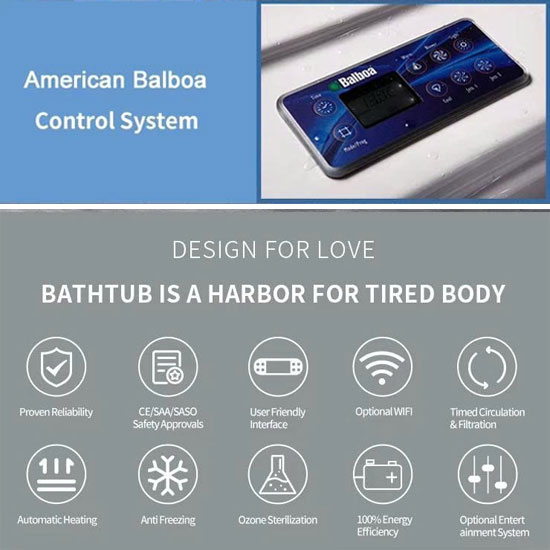- Hệ thống điều khiển: BALBOA® nhập khẩu từ Mỹ