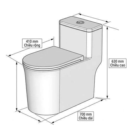- Kiểu dáng: Bồn cầu 1 khối xả, két liền
