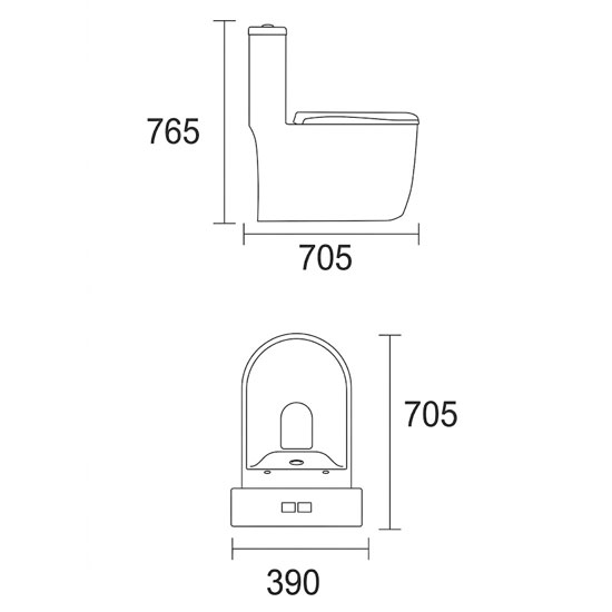 - Kiểu dáng: Bồn cầu 1 khối xả, két liền