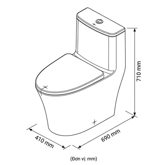 • Kiểu dáng: Bồn cầu 1 khối xả, két liền
