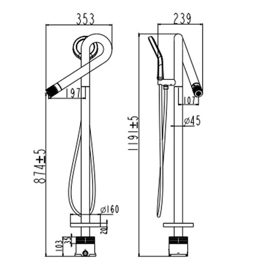 - Loại: Vòi sen xả bồn đứng sàn
