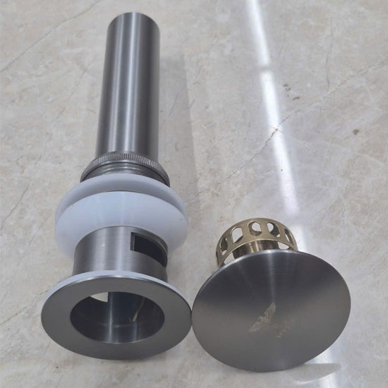 - Xi phông đóng mở nước dạng nhấn, có lọc rác và tóc chống tắc phù hợp với các loại chậu có lỗ chống tràn