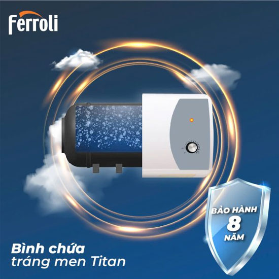 - Thanh nhiệt inox, hiệu suất cao và bảo hành 18 tháng đối với bình nóng lạnh Ferroli Trevi.