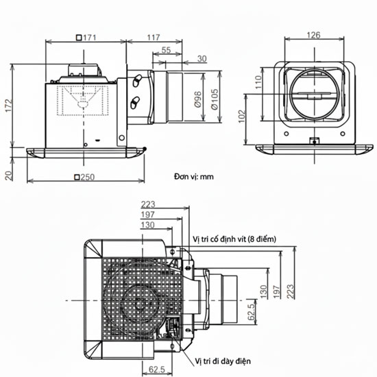 - Quạt hút gió Mitsubishi âm trần có động cơ êm ái, thiết kế giảm độ ồn tối đa.