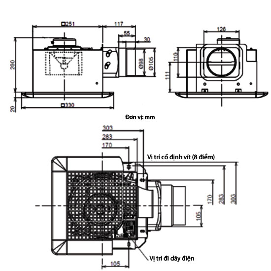 - Quạt hút gió Mitsubishi âm trần có động cơ êm ái, thiết kế giảm độ ồn tối đa.