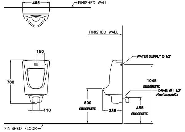 Bản vẽ Tiểu nam cảm ứng Cotto C3011AC/DC