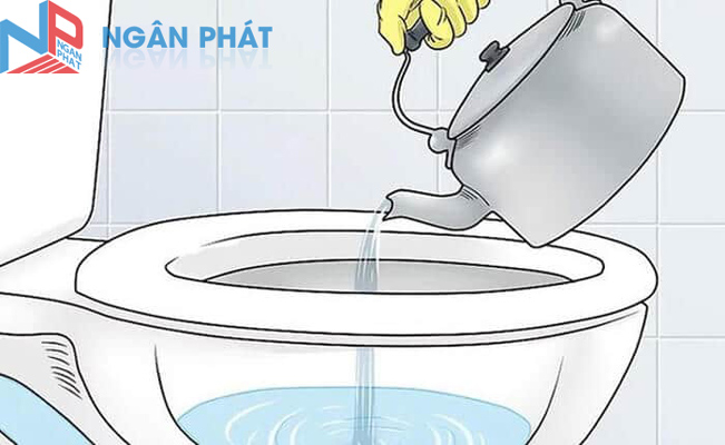 Đổ nước sôi vào bồn cầu là một trong những cách tẩy trắng bồn cầu bị ố vàng đơn giản, an toàn nhất. Bạn chỉ cần dội nước sôi vào bồn cầu rồi để trong 30-40 phút. Nước sôi sẽ làm tan chảy mảng bám ố vàng, chất cặn bẩn… trong bồn cầu.